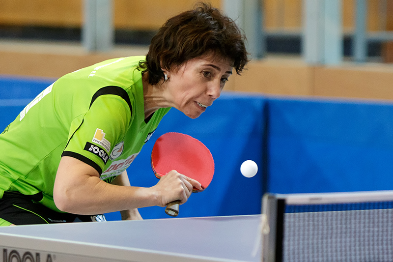 Beschreibung | ...mußte auch wieder antreten und G. Pota vertreten. Auch sie ließ sich nicht von Schwabhausens Nr.3 - Agnes Kokai - stoppen und gewann souverän |