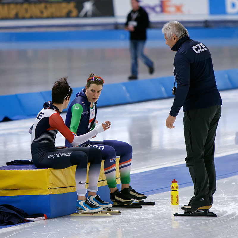 Beschreibung | ...Irene Wüst und Martina Sablikova nach irem 1500 m Lauf, den die Niederländerin gewann. Jedoch siegte die Tschechin Sablikova im Mehrkampf |