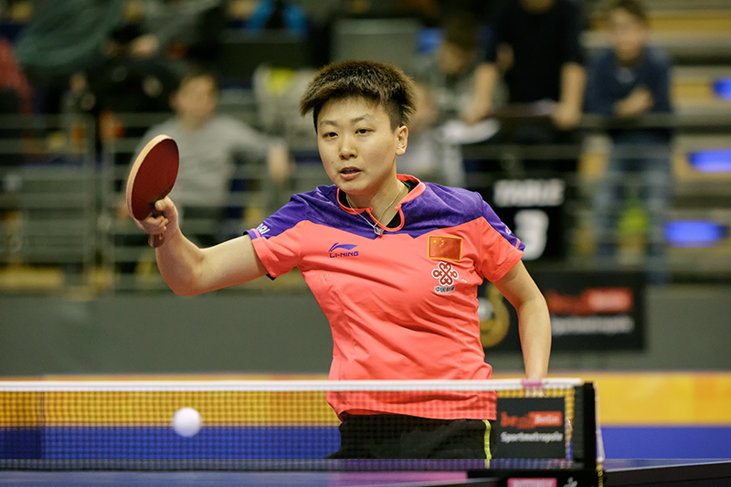 Beschreibung | Die Chinesin war bei den German Open aufgrund einer Verletzung nicht in bester Verfassung und schied im Achtelfinale aus |