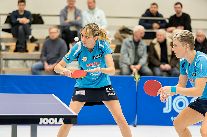 Beschreibung | ...spielten Matilda Ekholm + Kathrin Mühlbach und siegten nach 1:2-Rückstand noch mit 3:2 Sätzen gegen Bondareva + Schreiner |