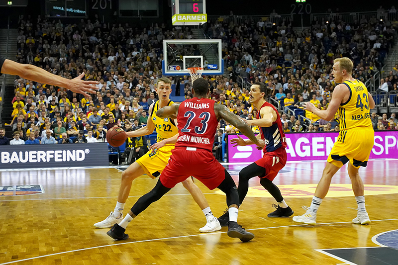 ...sucht hier am Kreis der Bayern seine Mitspieler einzusetzen