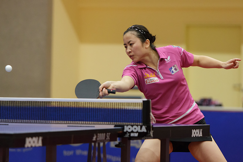 Beschreibung | ...die Europameisterin hier in ihrem Match gegen Georgina Pota, das sie denkbar knapp im 5. Satz verlor |