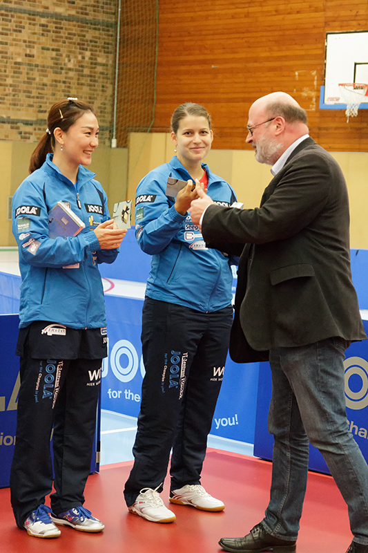 Beschreibung | ...werden vor dem CL-Match gegen Postas Budapest vom Berliner Präsidenten für ihre Olympia-Silbermedaille geehrt |