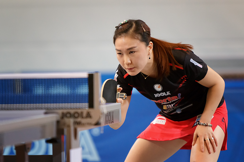 Shan erwartet den Aufschlag...