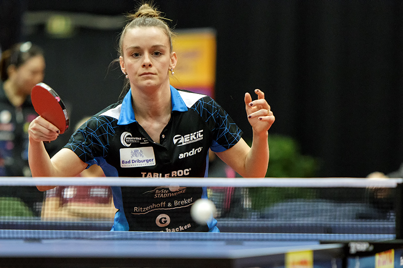 Beschreibung | Hier im Match gegen Tie Yana von Berlin Eastside, der sie mit 0:3 unterlag |