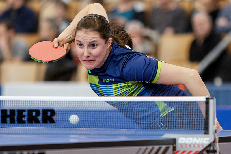 Beschreibung | Hier bei den Deutschen Meisterschaften 2018 in Berlin beim Doppel-Finale, das sie überraschend mit ihrer Ersatz-Partnerin Huong Do Thi, die für Petrissa Solja eingesprungen war, im Entscheidungssatz gewinnen konnte. |
