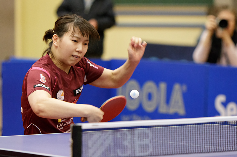 Beschreibung | ...in einer Szene beim CL-Halbfinal-Rückspiel. Dieser sympathische "Wirbelwind" aus Japan konnte mit einem glatten 3:0 gegen Simy Kulakceken zum Sieg der Berlinerinnen beitragen |