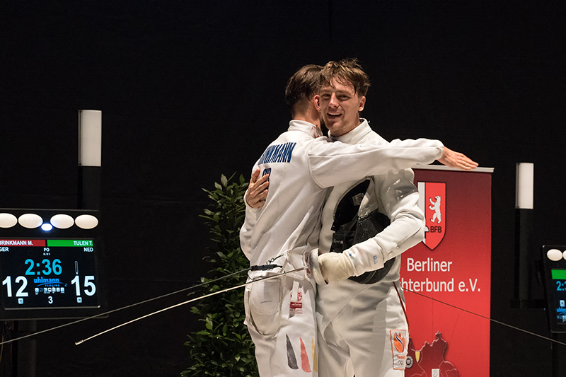 Beschreibung | ...und die faire Geste des Unterlegenen beim Degenfinale in Berlin |