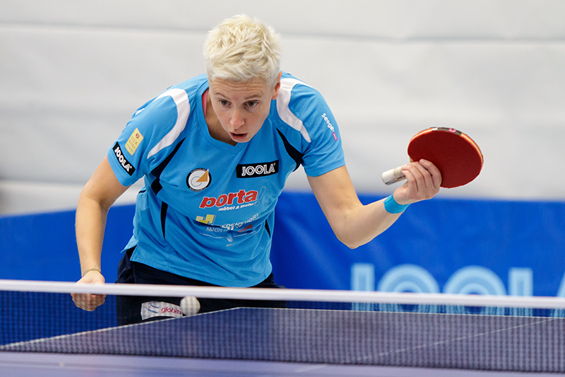 Beschreibung | Beim BL-Match gegen Bingen hatte sie gegen Chantal Mantz mehr Schwierigkeiten als gedacht, doch konnte sie sich schließlich nach fünf Sätzen mit 3:2 durchsetzen |